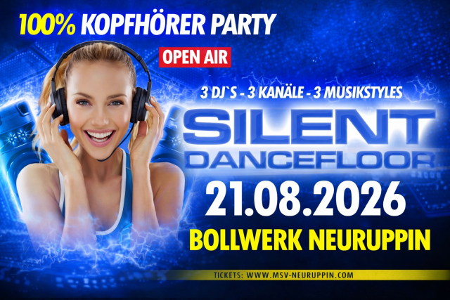 Der neue Trend jetzt auch in Neuruppin: Die Kopfhörerparty oder Silent Disco! Die Musik kommt direkt über Funkkopfhörer in Dein Ohr. Ein einzigartiges Partyerlebnis! Du kannst mit Freunden feiern, die einen völlig anderen Musikgeschmack haben. Weil Ihr trotzdem zusammen tanzen könnt. Jeder für sich, zu seiner Musik, in seinem Stil. Und Du kannst in Ruhe mit Deinen Freunden sprechen, während neben Dir getanzt wird. Eine besondere Veranstaltung! Geräuschlos, stimmungsvoll, vergnügt.