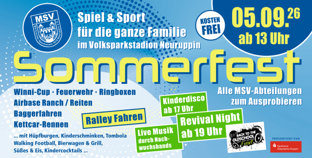 Vom 3.-5. Juli findet in Neuruppin die Mini-WM 2026 der BALLFREUNDE statt. Ein großes Fußballturnier mit zahlreichen Mannschaften aus verschiedenen Nationen und Altersklassen… seid dabei! Spannende Spiele, starke Teams, besondere Momente und eine Atmosphäre, die man nur beim MSV und den BALLFREUNDEN erlebt. Freut Euch auf Emotionen, Teamgeist und jede Menge Gänsehaut!