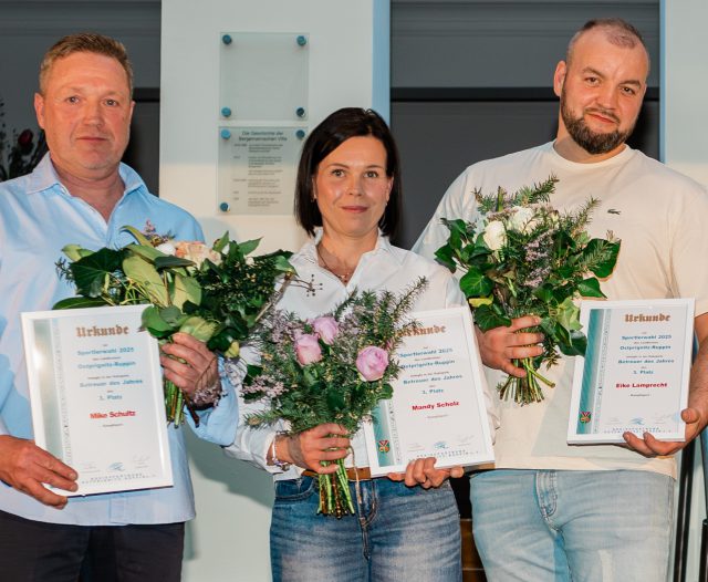 In der Abteilung Boxen gab es 2025 mehrere überregionale Erfolge, darunter ein Dritter Platz bei der Deutschen Meisterschaft sowie zwei Landesmeister- und einen Vizelandesmeistertitel. Dies ist vor allem dem engagierten Trainerteam von Mike Schultz (links), Mandy Scholz und Eike Lamprecht zu verdanken. Bei ihnen steht vor allem auch der soziale und integrative Aspekt des Sports im Vordergrund: Die Stärkung des Gemeinsinns, die Überwindung kultureller und sozialer Unterschiede sowie das Erreichen gemeinsamer Ziele wird vom Trainerteam großgeschrieben. Mit ihrem Engagement haben die Drei in den letzten Jahren nicht nur starke Einzelsportler hervorgebracht, sondern auch eine tolle Gemeinschaft geformt. Dafür wurden sie nun vom Kreissportbund mit dem dritten Platz in der Kategorie „Betreuer“ bei der Wahl zum „Sportler des Jahres“ ausgezeichnet. Herzlichen Glückwunsch!